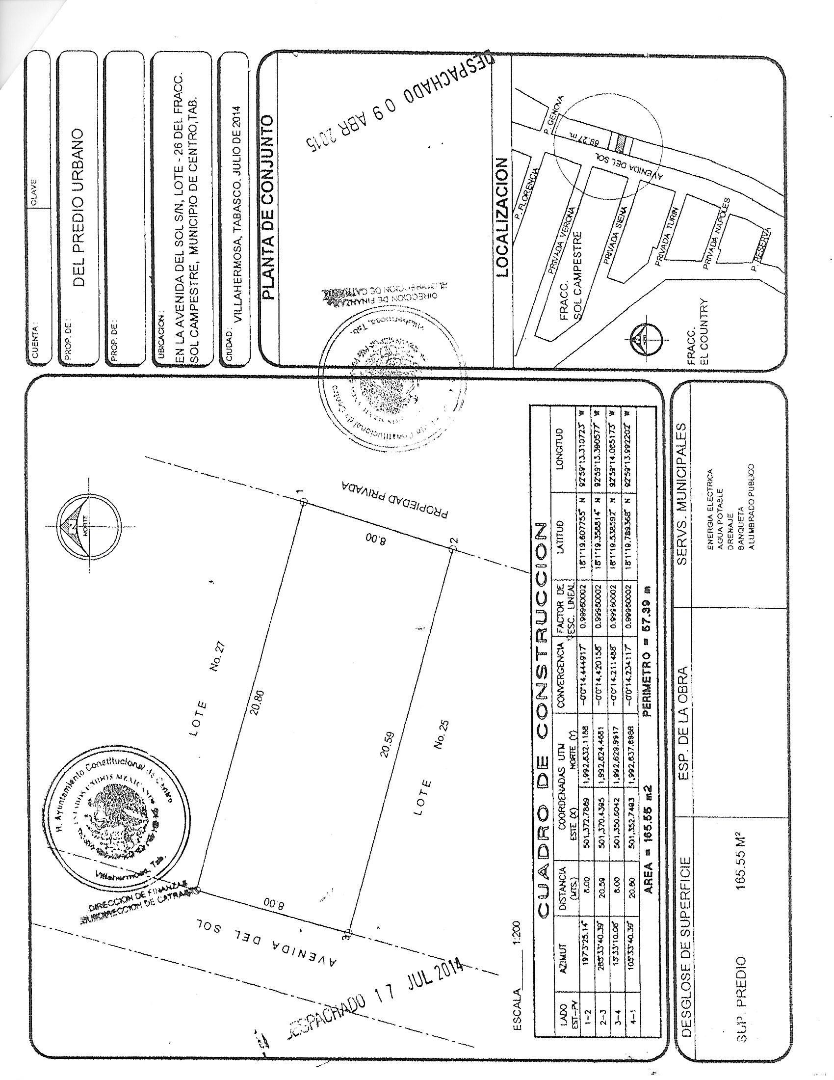 Terreno en Venta en Sol Campestre, Centro,Tab.